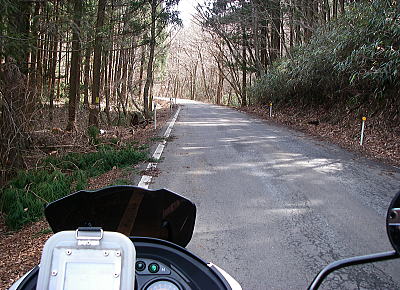 峠より東側は、1.5車線幅で薄暗く路面状態も余り芳しくありません。