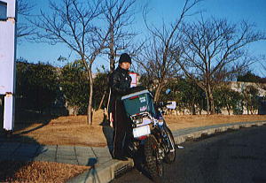 「いらっしゃいませぇ〜。今日、バイクのお客さん初めてです〜♪」