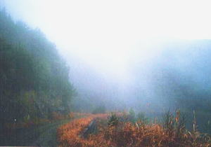曲がりくねった道を登ってゆく。見通しは悪い。