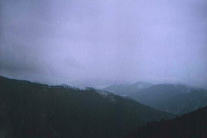霧に霞んだ山々が遠くまで続いているのが見える。