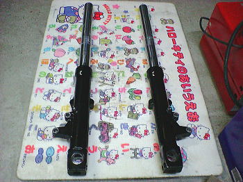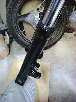 Lフォークはスムーズに抜けましたが、Rフォークは抜け難い状況でした。