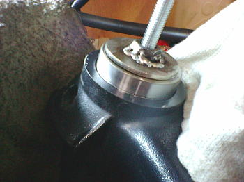 反対側はダブルナットにて固定し、締上げながら圧入してゆきます。