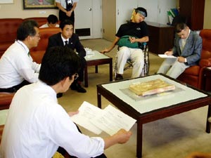 | いよいよ 佐久間市長との懇談会 開始 まずは提案書と地域福祉計画の参考資料について提出しました ※ 参考資料について詳細の問合せ先は ハーモニー部長まで 林大輔 宛 eve-info@mail.goo.ne.jp |