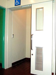 | 勉強会終了 五井公民館の身障者用トイレにドアが付いてました 最近まで カーテンだったのです ドアが付いたので写真撮りました |
