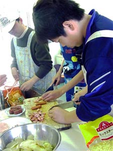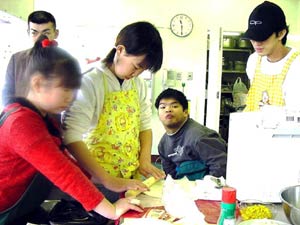 ビザ作りの風景です 微笑み 語らい 大爆笑もしながら 楽しくピザをみんなで作りました |